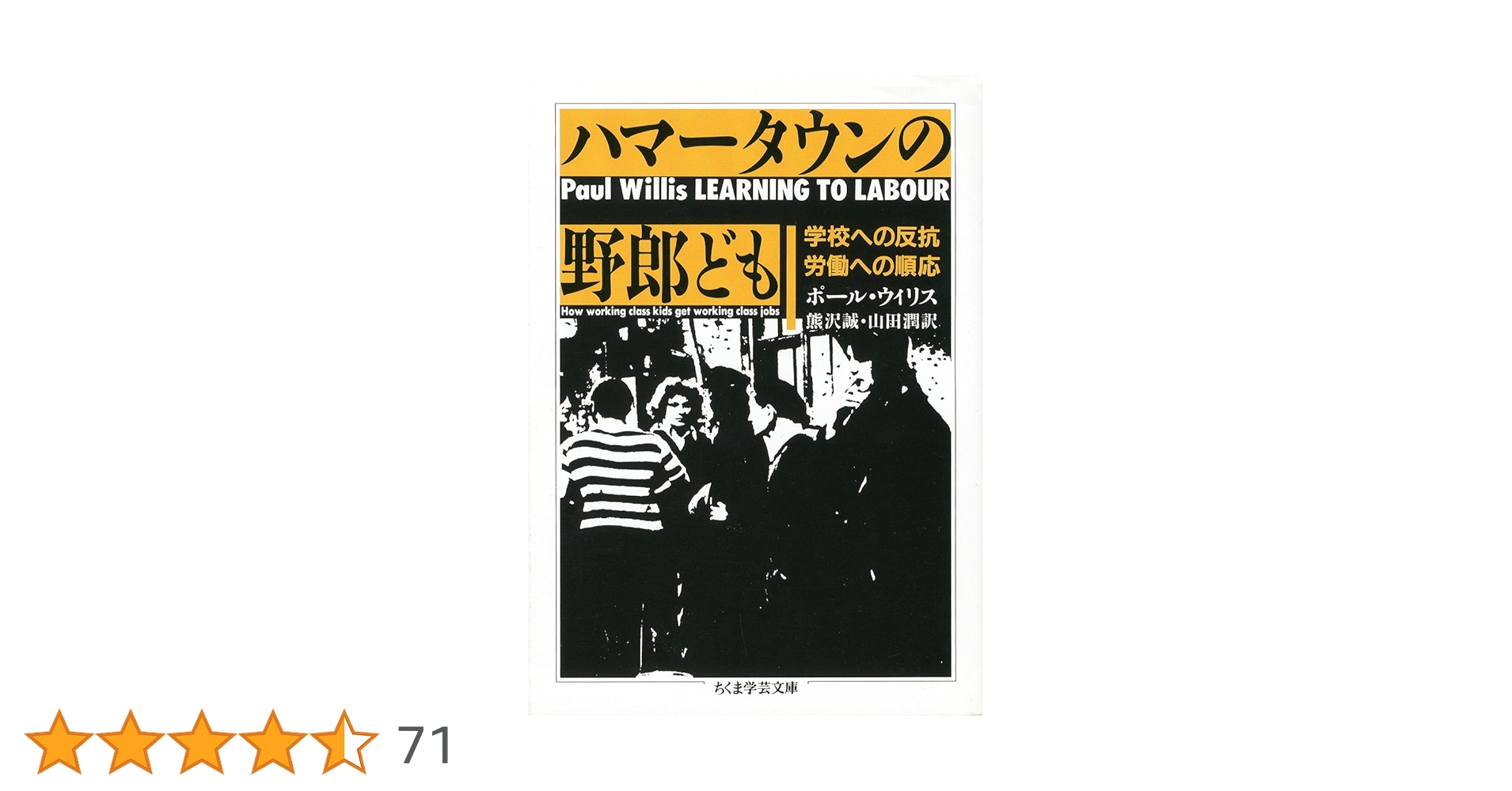 イギリスの中等学校を卒業し、すぐに就職する労働階級の少年たち。彼らのいだく学校・職業観はいかなるものか? ―を生活誌的な記述によって詳細にたどり、労働階級の文化が既存の社会体制を再生産してしまう逆説的な仕組みに光をあてる。